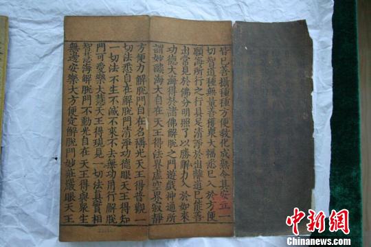 9日,国家级古籍修复技艺传习中心山西传习所在山西省图书馆成立,并启动修复金代皇统九年山西榆次雕版印刷的《大方广佛华严经》(120卷)其中一卷等21件国家一级珍贵佛教古籍。图为山西珍藏的佛教古籍。 由受访者提供