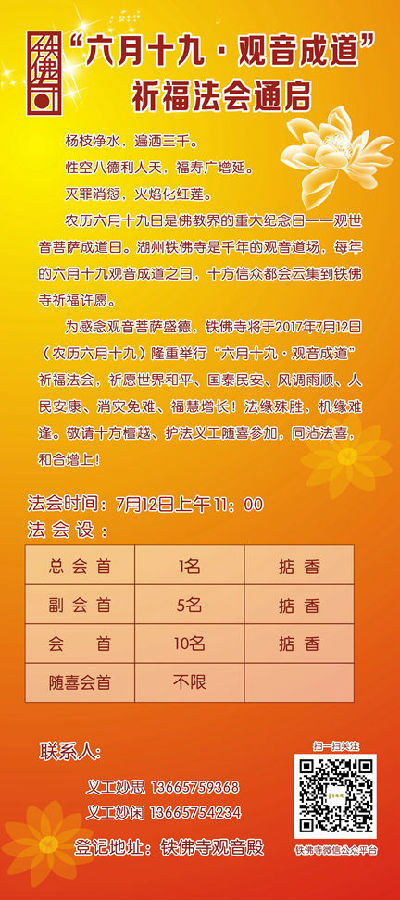 2017年7月12日“六月十九·观音成道”祈法会通启