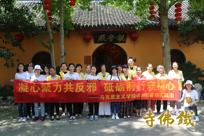合 影 7月13日下午,湖州师范学院马克思主义学院反邪教暑期社会实践团的十多位同学来到铁佛寺开展“崇尚科学,反对邪教,促进和谐”主题宣传活动。 铁佛寺普觉慈爱义工陪同同学们参观并详细讲解历史文化沿革及发展现状。在主题座谈中,义工就同学们提出的“寺院是如何进行反邪教工作”、“在反邪教活动中的心得体会”等问题作出了详尽的回答,大家相互交流经验,借鉴新方式新途径。座谈结束前,参会义工们纷纷填写反邪教问卷调查表,积极配合支持大学生们的暑期实践活动。 反邪教宣传活动结束后,同学们体验了一回义工生活,他们打扫普觉堂、清洗茶具,分工合作,完成得十分圆满并表示今后在公益活动领域与铁佛寺义工团队加强合作。 反邪教是全社会共同的任务,宗教团体深刻认识自身特殊的地位和优势,更加充分地发挥好揭批邪教的尖刀作用、抵御邪教的盾牌作用、破解邪教的奇兵作用。 |
