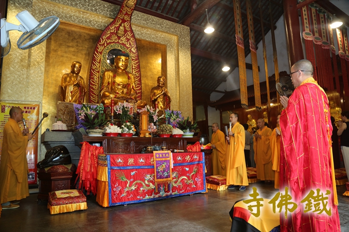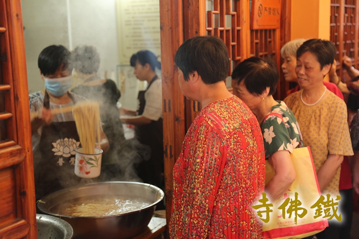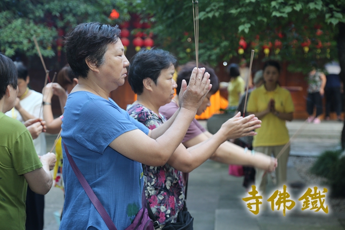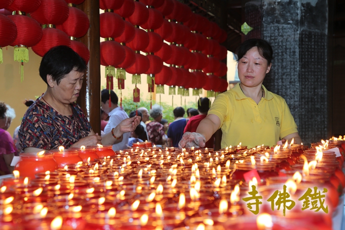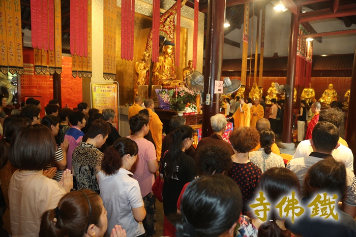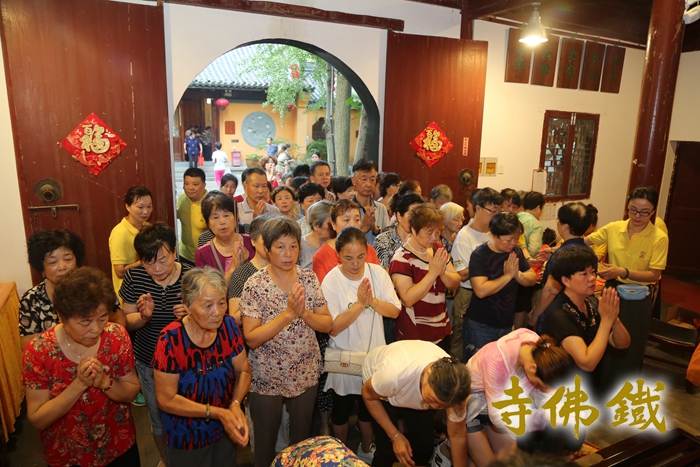 祈愿世界和平 正法久住 国泰民安 大海波心,磐陀石上。 真观净观,是相非相。 如月在天,无水不现。 观音菩萨大慈大悲,寻声救苦,自佛教传入中国以来就深受广大百姓崇敬。经过历朝历代的演化,观音信仰逐渐形成独具中国特色的观音文化,并成为中国传统文化和民族精神的重要组成部分。在观音信仰中,有关菩萨的三个纪念日,即降生日、出家日、成道日在百姓的口口相传中进一步具体化,分别是二月十九(降生)、九月十九(出家)、六月十九(成道),自宋代以后,每年的这三个日期逐渐成为重要香期,无论寺院民间都会自发举行庙会、法会,成为盛大的佛教节日。 为纪念观音菩萨成道吉日,2018年7月31日(农历六月十九),湖州铁佛寺隆重举行祈福法会,祈请观音菩萨护念娑婆众生,普施甘露,救度有情。 当日凌晨4时30分,山门开启,来自城乡各地的香客在义工的引导下纷纷前来上香礼佛,有的老年居士还跟随常住法师们一同早课。与此同时,斋堂门前等候领取免费素面的队伍也逐渐排起长队,至5时许,斋堂的第一锅素面出锅,领取秩序在义工的维护下井然有序,没有喧闹,只有静静地等待。 上午8时开始,气温逐渐升高,但香客信众也如潮水般涌进山门,香烛结缘处、观音殿和大殿前都由维序义工组织排队,控制人流,保障安全。同时为防暑降温,寺院在观音殿后面设置免费茶水供应点,有关防暑用药也做了相应准备。 中午11时,祈福法会正式开始,虽然高温难耐,但仍然不减广大信众参加法会的虔诚之心。一个多小时的普佛仪轨如理如法,以此功德回向法轮常转、正法久住、世界和平、灾祸不起,与会大众同沾法喜,共获法益。 |