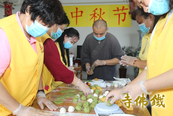 恒安法师与义工们精心制作爱心月饼