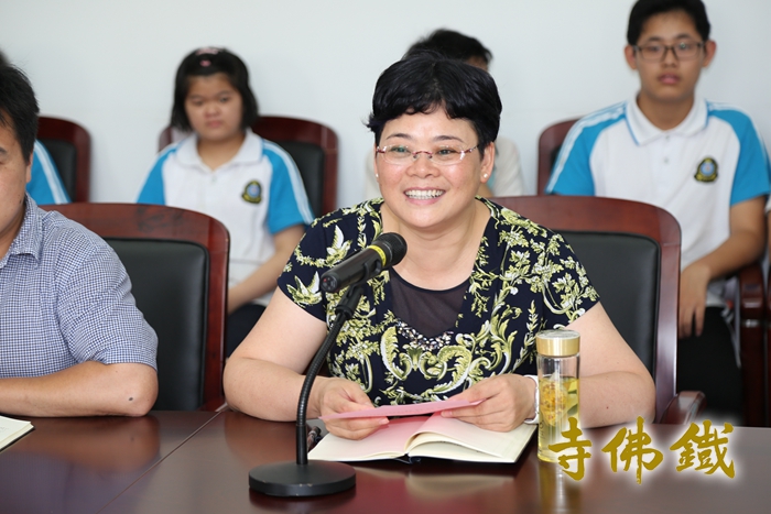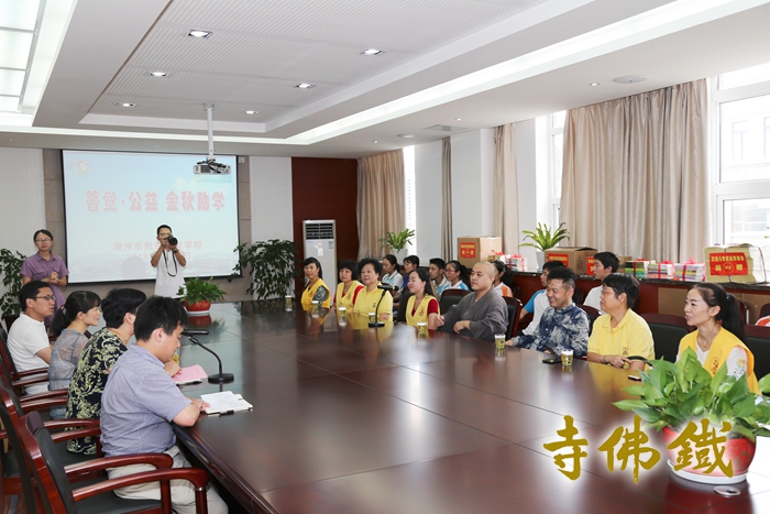 合 影 9月20 日下午,铁佛寺普觉慈爱基金与湖州市书法家协会副主席胡迪权老师一同走进湖州教育康复学校,开展助学公益活动。 在顾海琴校长及老师们的热情接待下,大家了解了该校自1987年创办至今,不仅促使很多聋儿在康复进度上取得可喜进步,还根据每个人兴趣特长因材施教,培养专业技能,在学好文化知识的同时,拥有一技之长,将来更好地融入社会,独立自强。 助学捐赠仪式上,义工们将图书、书法用品、文具等分发到同学们手里,特意准备的月饼,更添中秋气氛。随后的书法课上,胡迪权老师先写了“中秋快乐”四个字做示范,让同学们临摹,孩子们一笔一划地专注书写,每周2次书法课的熏陶,让他们已颇具功底。同学们将亲手书写的“中秋快乐”团扇赠送给铁佛寺法师及义工,吉祥的祝福萦绕在心间。 在这所学校里,在与孩子们的相处中,你看不到残疾带来的悲伤,更多的是从他们的热情开朗中感受到生命的自强不息和积极向上。而这背后,是广大特教老师默默耕耘和守护,值此中秋佳节之际,祝福特教老师及同学们节日快乐,吉祥如意!