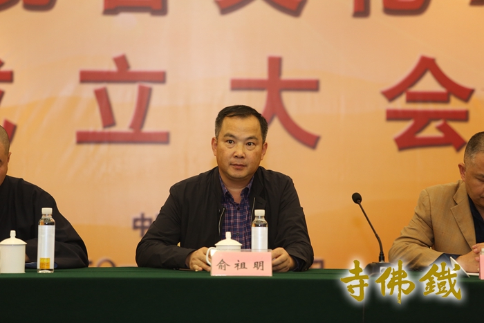 湖州市民政局社会组织管理局局长俞祖明宣读《关于成立湖州市观音文化研究会的决定》