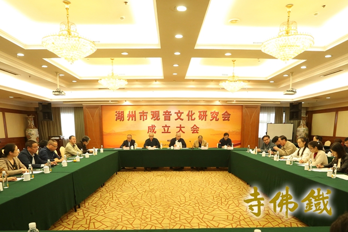 合 影 2013年10月,湖州市佛教协会观音文化研究会成立。五年来,创办杂志,开展各项学术活动,成绩斐然,可以说硕果累累。经广大观音文化研究的学者的不懈努力以及上级领导的支持,经有关部门批准,同意成立独立社团法人——湖州市观音文化研究会。 2018年10月22日,湖州市观音文化研究会成立大会在国际大酒店隆重召开。出席会议的领导和嘉宾有湖州市民政局社会组织管理局局长俞祖明、市民宗局宗教处处长沈林华、市佛教协会会长慈满法师,湖州市观音文化研究会全体会员43人参加会议。 下午14:00,大会在庄严的国歌声中拉开帷幕。首先由湖州市民政局领导宣读《关于成立湖州市观音文化研究会的决定》,然后由湖州市观音文化研究会筹备组组长智根法师向大会作《湖州市观音文化研究会筹备工作报告》。在接下来的议程中,通过了《湖州市观音文化研究会章程》、《第一届理事会选举办法》、《财务管理办法和会员会费收取标准》并根据《选举办法》推选出第一届理事会。在稍后举行第一届理事会第一次会议中,选举产生了湖州市观音文化研究会第一届领导班子和常务理事会。 最后,由当选会长智根法师和市佛协会长慈满法师发言。 智根法师在发言中指出,观音精神的核心是“慈悲”。观世音菩萨的慈悲精神与中国儒家仁义之教的主张相融合,鼓励人们追求“真、善、美”,在化导和抚慰人心、稳定社会和谐方面都具有积极的意义,与“富强、民主、文明、和谐、自由、平等、公正、法治、爱国、敬业、诚信、友善”字的社会主义核心价值观有着非常密切的关系。 慈满法师发言中强调,观音文化是民族文化的重要组成部分,在中国有着广泛的群众基础,是中华民族精神源泉的组成部分,弘扬观音文化是时代需要,是历史责任。他还就如何探讨湖州观音文化的历史渊源、历史地位和历史作用,发掘观音文化古迹,研究观音经文经典,打造观音文化品牌等方面工作提出几点建议和要求。
