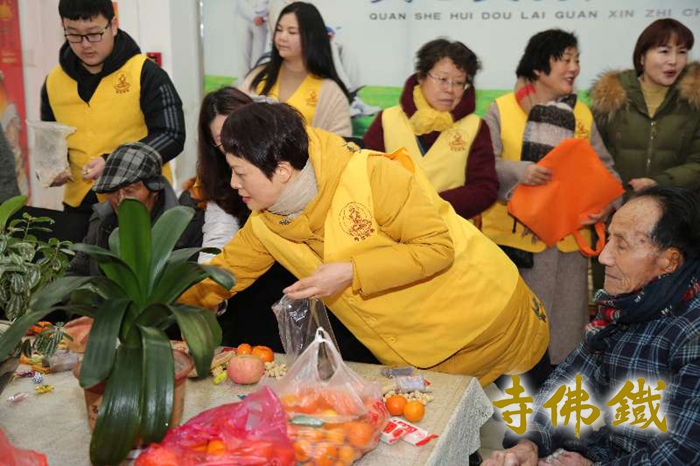 合 影 当人们阖家团圆,沉浸在过年的喜庆氛围中时,铁佛寺义工们在大年初五走访吴兴区慈爱老年康复服务中心,送上各类水果、大米、食用油等生活必需品,向老人家们恭贺新年。 在中心工作人员陪同下,义工将慰问品及铁佛寺“诸事和顺”挂历送给老人,每一次合掌、每一句阿弥陀佛饱含真切的祝福。目前该中心居住的老人以高龄居多,护工们日常护理工作繁重。老人们大部分身体不便,义工走近他们身边陪着拉家常,话新年,爽朗的笑声萦绕在院子里,也希望通过一次次真诚的交流、真挚的关心,我们能走近老人们的心里。 佛法最重视“养老”,讲求要报父母、众生、国土、佛祖“四重恩”,以及“普渡众生”的理念,这与社会上提倡的养老、敬老、助老中华传统美德不谋而合。新的一年,铁佛寺普觉慈爱基金将继续致力于落实敬老助老及老年康复服务等领域的公益事业,祝福所有老人们新年吉祥,身体康泰! |