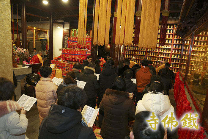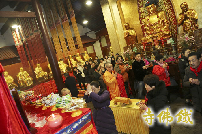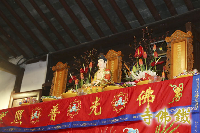 与会大众同沾法喜 2019年2月13日,农历正月初九,湖州铁佛寺举行隆重的供佛斋天法会,祈愿护世诸天圣众守护正法,驱魔卫道,同时赐福百姓,太平永享。 因天降甘露,故今年斋天法会供台搭建在大殿之内,备陈各式殊胜供品。清晨五时,参加法会的法师与信众齐聚大殿之内。在梵呗的唱念声中,主法法师先为坛场进行洒净,再以香花迎请诸佛菩萨和诸天圣众降临道场应供,斋天所请的诸圣为:十方常住佛法僧宝、光明会上护法诸天,尸弃大梵尊天、忉利帝释尊天、东方持国尊天、南方增长尊天、西方广目尊天、北方多闻尊天、金刚密迹尊天、摩醯首罗尊天、散脂大将尊天、慧聚辩才尊天、金幢功德尊天、护法韦驮尊天、坚牢地神尊天、菩提树神尊天、鬼子母神尊天、摩利支神尊天、日宫太阳尊天、月宫太阴尊天、娑竭龙王尊天、阎摩罗王尊天、紧那罗王尊天、紫微大帝尊天、東嶽大帝尊天、雷声普化尊天,除了前述二十四诸天外,尚有寄位诸天、金刚力士、天龙八部等诸天的侍从天,以及四空四禅、六欲诸天、后妃将帅、部校兵卒、统山海之神祗、尽幽显之圣众等等,皆一一发心虔诚供养,以此斋天供养之功德回向参加法会诸四众弟子人等灾厄消除、年运亨通、口舌永息、是非不生、逢凶化吉、遇难呈祥、好人相逢、恶人远离、工作顺利、出外安宁,一年之中吉祥如意。 早上七时,天已大亮,斋天法会殊胜圆满,义工们将撤下的供品分发给参加法会的信众,让大家同沾法喜、共获法益。 |