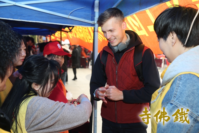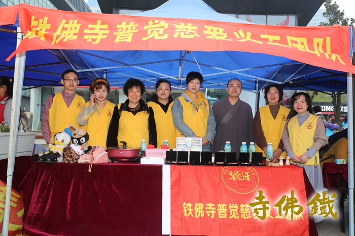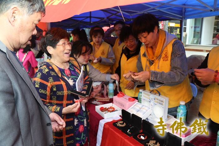 路过的市民朋友涌跃结缘铁佛寺义卖品