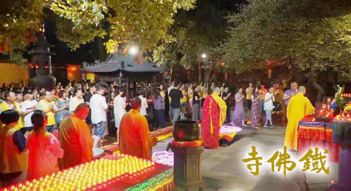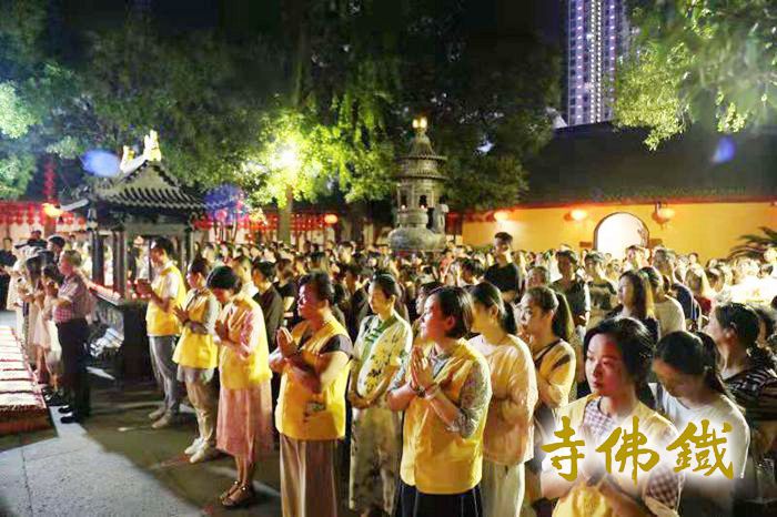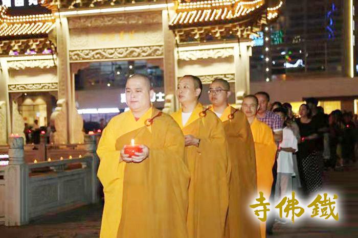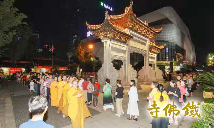 合 影 2019年9月13日(农历八月十五)是阖家团圆的中秋之际,铁佛寺当日晚举办“中秋传灯照大千·千年观音降吉祥”中秋拜月传灯祈福法会,祈愿世界和平、百姓安康。 月有三德:第一是圆满。我们形容佛菩萨是“佛面犹如净满月”;第二是光明。月之光明,是非常地柔软随顺的,譬喻佛法的弘扬也应该是“润物细无声”;第三是清净。从朔至望,虽有阴晴圆缺,但月体一尘不染,象征佛性清净。《华严经》云:“譬如灯炷,随其大小而发光明,若益膏油,明终不绝;菩萨摩诃萨菩提心灯亦复如是,大愿为炷,发智慧光,照明法界,益大悲油,教化众生,庄严国土,施作佛事,现大威德,无有休息”。 在汉传佛教传统中,八月十五也被认为是月光菩萨圣诞。而且月光清凉柔和,故佛教中也常将佛菩萨的恩德比喻为月光。灯代表佛法,佛法代表智慧,智慧之光明能破除愚昧之黑暗。“传灯法会”寓意以灯光相续,把佛陀的智慧和慈悲传递到大众心中,带来无限的温暖、希望、祥和、平安和欢喜。 傍晚19:30,法会在大雄宝殿前广场如期举行,近四百名信众参加。钟磬梵音中,大众一心祈请月光菩萨光降道场,共同祈愿正法久住,国泰民安。随着“南无本师释迦牟尼佛”念诵声,一盏盏象征光明智慧的心灯依次传递每一位善信的手中,大家手护心灯按秩序从大殿出发,依次走出天王殿,于寺前广场右绕三匝,灯灯相续,延绵不绝。 同时,沿途不断有路过的市民群众自觉加入到传灯的队伍中,使队伍越来越壮观。依次回到大殿广场后,集体在法师带领下唱诵回向偈,以此传灯功德回报四生九有、八难三途一切众生悉离苦海,同证佛果。 法会如理如法,大众同沾法喜。 |
