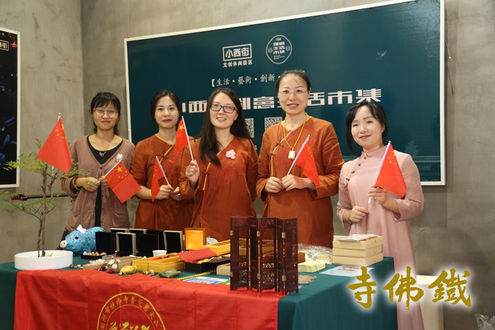 合 影 10月1 日的小西街步行街悬挂着鲜艳的五星红旗,披上节日盛装,处处洋溢着祥和、喜庆的节日气氛。由小西街文创、湖州团市委、吴兴区文广旅体局、吴兴区妇联联合主办的“国庆70市集”拉开序幕,活动为期2天。 铁佛寺普觉慈爱义工团队带着各类精美的佛教文创品、手工艺品参与市集,采取义卖形式,所得款项全部捐赠给普觉慈爱基金,用于公益慈善领域。市民及游客纷纷驻足在铁佛寺普觉慈爱义工团队的义卖摊位前,带有吉祥寓意的佛珠手串、精致的祈福挂件、定制文具、草本香囊等义卖物品极受欢迎,大家踊跃奉献爱心。爱心人士在现场既选购到合心意的物品,又通过义卖为公益慈善事业贡献自己的一份力量。义工们为每位咨询的市民、游客耐心解答、介绍相关情况,一次次地合十,祝愿大家诸事顺意。 在新中国七十华诞之际,参与一次公益之旅,这个国庆假期意义非凡。 |