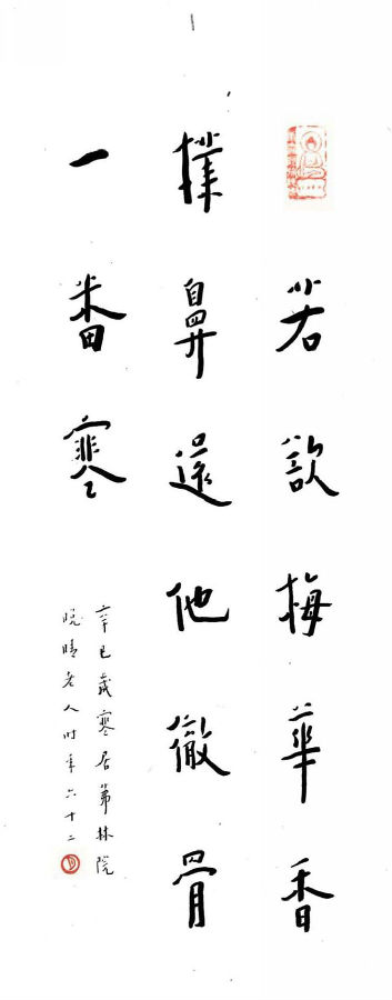 四、结语 “弘一体”是弘一法师从遵俗法,从而自由、淡泊以至达到佛教中涅槃的最高境界的具象化表现,其中所蕴藏的佛家美学即弘一法师超脱书法的技法本身,不被世俗所困的一种绝对自在性的书写方式。对于“弘一体”中的佛教美学的更深层面的探究,就是从弘一法师的心灵迹象出发去感悟他的思想演变。“弘一体”的字势及意蕴所彰显的宁静、淡泊、空灵、自由之美给后人带来一场真正的佛教美学盛宴,教人们读懂佛教美学的真谛在于心灵上的超越。因此,“弘一体”的发展迹象及后期所蕴含的境界指导了人们对佛教美学的理解、对于书法的艺术价值乃至人生哲学的更深层次的探讨。 参考文献 [1]李叔同《李叔同的禅语与修身》[M].译林出版社,2016年。 [2]高振农《佛教文化与现代中国》[M].上海社会科学院出版社,1992年。 [3]王海林《佛教美学》[M].安徽文艺出版社,1992年。 [4]王志敏《佛教与美学》[M].辽宁人民出版社,1989年。