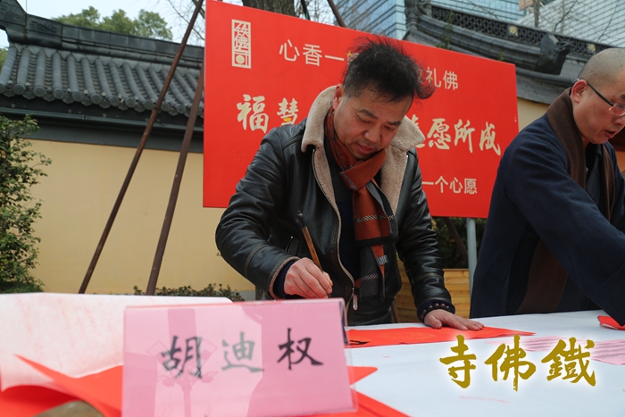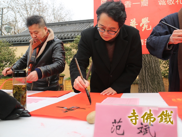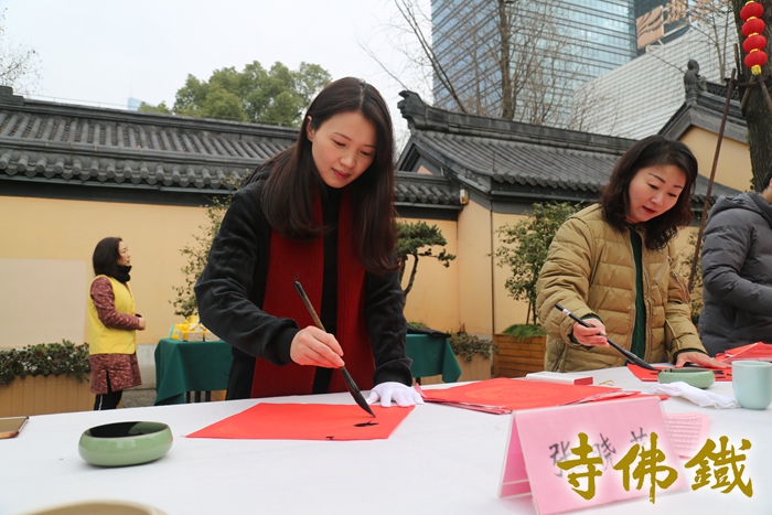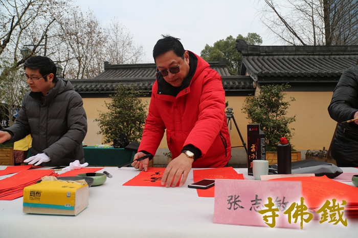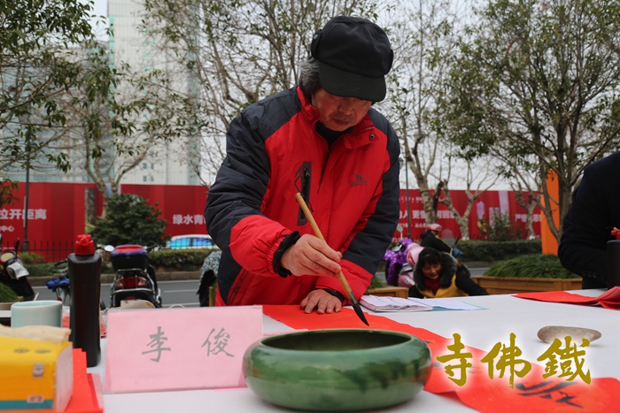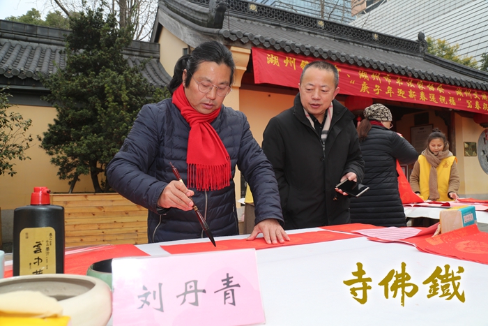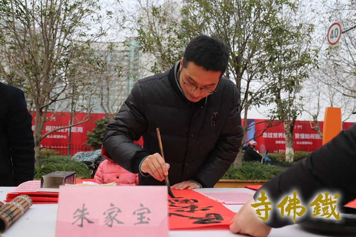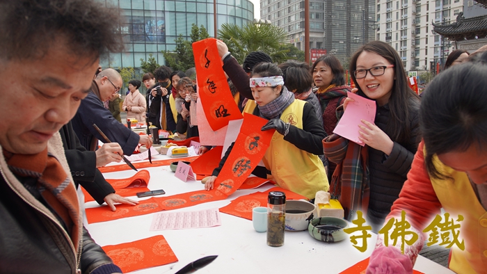 子硕愿成,庚子吉祥 春节是中华民族最重要的传统节日之一,每逢过年,家家户户门口贴上春联,家人齐坐,团团圆圆共享年夜饭的场景,已成为国人心中对于春节最温暖的记忆定格。贴上大红对联,既彰显了吉祥喜庆的节日氛围,又寄予了对新年的无限憧憬和美好期望。 值此2020新春佳节来临之际,为弘扬中华民族优良传统,营造吉祥红火的春节喜庆氛围,由湖州铁佛寺、湖州文澜书画院共同发起,浙江佳成建设有限公司协办的庚子年“子硕愿成”写春联送祝福活动于2020年1月19日上午举行。湖城各大书法家齐聚铁佛寺广场,现场挥毫泼墨为广大市民信众写春联、送祝福。 本次参加写春联的书法家有朱元更、范斌、胡迪权、张志敏、王利坚、杨建民、刘丹青、蒋能、张晓芸、朱家宝、韩同万、李俊和湖州市观音文化研究会副会长高宝平。各位书法老师饱蘸浓墨,在洒金对联纸上写下一幅幅年味十足、充满吉祥祝福的春联,老师的字,行云流水,落笔如云烟。虽然天气寒冷,现场每个人都热情高昂,洋溢着喜庆祥和的氛围。义工们为书法老师们拉纸、添墨,并将新写的春联挂起展示,待墨迹干透后分发给等着拿春联的市民。 现场,市民们纷纷来向书法家们请墨宝。“庚年有庆猪辞岁,子夜无声鼠报春”;“一帆风顺吉星到,万事如意福临门”等喜气祥和的春联在书法家的笔下熠熠生辉,大家兴致勃勃地观看书法家们书写春联,兴高采烈地欣赏着赠送的春联、福字。手写春联让前来的市民欢喜不已,认为此次活动让他们感受到更加浓烈的新年气氛。 本次活动共送出春联二千余幅,其中现场手写千余幅。大大满足了群众的精神文化需求,并促进了传统文化的弘扬,受到了市民的热烈欢迎。 |