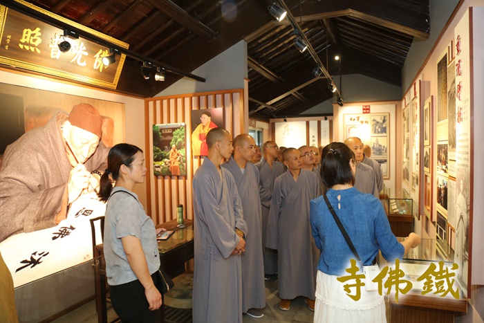 合 影 2020年9月10日上午,磐安县佛教协会参访团一行莅临小西街79号参访,湖州市铁佛寺天慧法师和恒安法师热情接待了参访团一行。铁佛寺义工妙思居士向参访团一行详细介绍了79号的基本情况和五大功能组成,详细讲解了明老纪念馆的构建、设馆初衷和各版块的具体展示,并带领大家一并参观了《普觉》杂志编辑部、普觉书画院、普觉都市禅堂、明学长老故居和普觉书屋。 参观过程中,法师们由衷赞叹于纪念馆的设计巧妙和展列的精心策划,既感慨于老和尚的高僧风范和德行四方,也赞叹于铁佛寺的用心管理和维护。79号整体环境清幽、设计布景科学合理,面积不大却处处透着禅意雅致,获得了参访团法师们的一致赞赏。参观结束后,参访团一行在普觉书屋暂作调整休息,天慧和恒安两位法师和参访团众法师进行了短暂的交流活动,向参访团介绍了铁佛寺的基本情况和《普觉》杂志的发展现状,重点介绍了铁佛寺在佛教文化建设和生态寺院建设方面所取得的成绩,引起在座众法师的极大兴趣。交流结束后,天慧法师和恒安法师与参访团一行合影留念,并期许下次的交流学习。 |