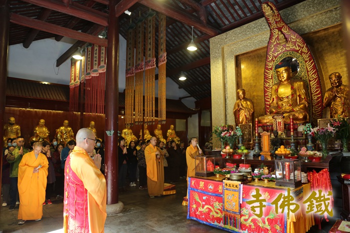 法会现场庄严清净,祝愿国泰民安,风调雨顺 2020年11月4日(农历九月十九),欣逢观音菩萨出家纪念日,千年观音道场——湖州铁佛寺隆重举行“九月十九·观音出家日”祈福法会, 祈愿法轮常转、正法久住、国基永固、社会和谐。 晨光微熹,空气中都弥漫着芬芳。清晨5:30“普觉慈爱”义工已在各岗位上就位,迎来了第一波前来进香朝圣的善信。与此同时,在维序义工的协助下,斋堂前领取免费结缘素面的群众也排起了长长的队伍,秩序井然。广大香客均自觉领取三支清香,并按照指示路线点香、上香,尽管人流如织,但处处彰显佛门清净。在这殊胜的日子里,来自各地的善信云集千年观音道场,虔诚恭敬礼佛,至诚祈愿,只为与大慈大悲观世音菩萨感应道交的刹那融和。 时至10:30,祈福法会在悠扬的梵呗声中拉开帷幕,大殿内钟罄和鸣,与会信众欢喜祥和,道场庄严清净,幡花庄严,香云缭绕,信众与法师们一起诵经祈福,愿此香花云,遍满十方界。一 一诸佛土,无量相庄严。具足菩萨道,成就如来香。观世音菩萨出家殊胜日,铁佛寺两序大众普佛祈福,纳福添寿,共沾法喜。 十二时许,祈福法会圆满,以此法会功德祈愿天下无灾,大地清宁。仰仗观音菩萨巍巍功德之力回向国泰民安、风调雨顺,与会大众法喜充满,同获法益。 |