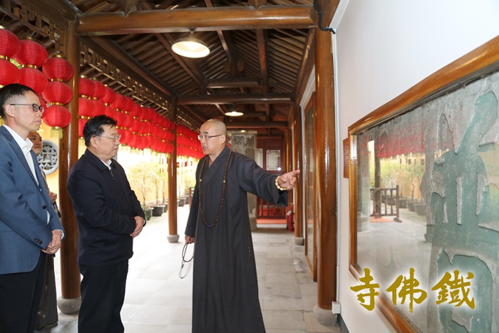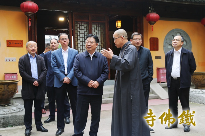 湖州市政协党组书记、主席杨建新率调研组一行莅临铁佛寺 ‍ 11月6日上午9时,湖州市政协党组书记、主席杨建新和市委常委、统战部部长、市政协党组副书记李上葵率调研组一行莅临铁佛寺开展调研工作,市政协党组成员、机关党组书记陈发瑶、市政协副秘书长、办公室主任杨兴荣、市委统战部副部长、市民宗局局长鲍鸿、市政协社法民宗委主任刘宏伟、市文化广电旅游局副局长沈康民、市政协研究室副主任黄枫等陪同考察。‍