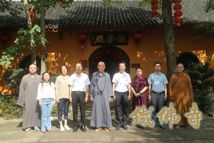 合 影 10月8日上午,由市委统战部副部长、民宗局局长鲍鸿带队的湖州市政协委员一行6人莅临铁佛寺调研指导。观音文化研究会会长、市佛教协会副会长、铁佛寺住持智根法师热情接待了调研组一行,天慧法师、恒安法师陪同参加。智根法师首先向调研组介绍了铁佛寺的历史变革,并就寺藏文物向调研组一行逐一详尽讲解。一件文物即是一个引人入胜的故事,智根法师生动风趣的语言给予了大家极大的代入感,博得调研组成员频频称赞。调研组一行对铁佛寺的景观和环境建设不吝赞叹,一步一景,精致雅观,整体环境清幽静谧,禅意隽永,可以称之为沿袭宋代禅院风格的典范。寺院庄严洁净的内外环境及规范有序的管理模式也得到了各位领导的赞叹。