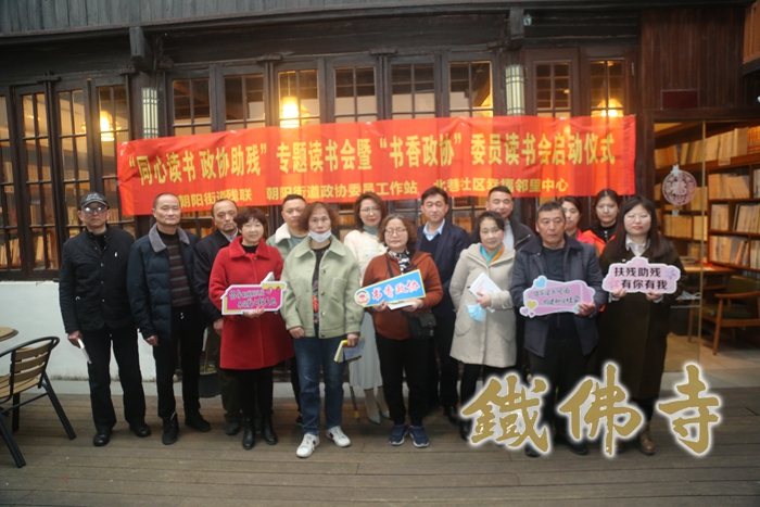 合影 3月1 日下午,朝阳街道残联携手街道政协委员工作站在小西街79号普觉书屋举行“同心读书政协助残”专题读书会暨“书香政协”委员读书会启动仪式。 本次读书会旨在营造全民终身学习的氛围,激发政协委员和残障人士读书看书的积极性,为政协委员和残疾人建起沟通的桥梁,通过政协委员带动残疾人群,培养看书阅读的习惯,在提高政协委员履职尽责能力同时,进一步营造助残扶残的社会风尚。以读书会、宣讲会、志愿活动等,推动“文化湖州”、书香社会建设,也能提高残疾人朋友参与社会活动的积极性,感受到社会各界带来的温暖与关心。 活动现场,邀请湖州十一中副校长宦丽华、南大湖网总编宋滨海做领读人,推荐好书并分享读书心得。随后,“湖州最美残疾人”费斌也与大家大家分享自己自强创业的的心路历程,与会者特别是残障人士备受鼓舞。 关注关爱残障群体,一直是铁佛寺“普觉慈爱基金”公益事业的重要组成部分,在新的一年里,我们也将积极开展各类具有针对性的帮扶活动。