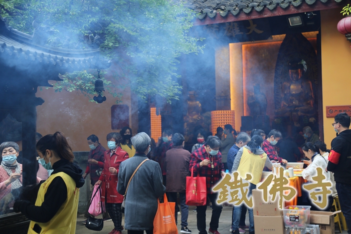 法会现场 2022年10月14日(农历九月十九),欣逢观音菩萨出家纪念日,千年观音道场——湖州铁佛寺隆重举行“九月十九·观音出家日”祈福法会, 祈愿法轮常转、正法久住、国基永固、社会和谐。 晨光微熹,空气中都弥漫着芬芳。清晨5:00“普觉慈爱”义工已在各岗位上就位,迎来了第一波前来进香朝圣的善信,扫码、量体温、查验三天核酸检测,防疫检查工作有序进行。与此同时,在维序义工的协助下,斋堂前领取免费结缘素面的群众也自觉排起了队,秩序井然。广大香客均自觉领取三支清香,并按照指示路线点香、上香,尽管人流如织,但处处彰显佛门清净。在这殊胜的日子里,来自各地的善信云集千年观音道场,虔诚恭敬礼佛,至诚祈愿,只为与大慈大悲观世音菩萨感应道交的刹那融和。