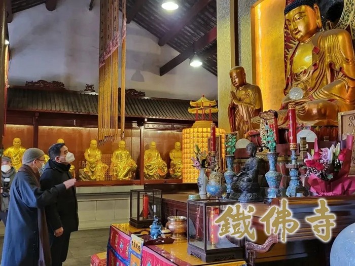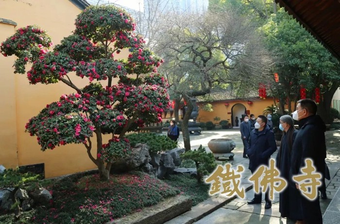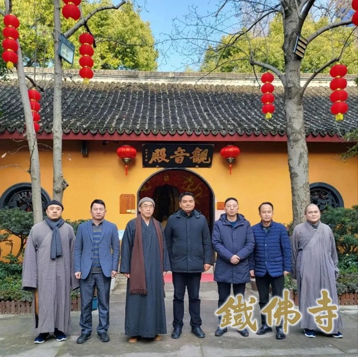合 影 2023年1月17日上午,浙江省民宗委副主任倪卫东一行莅临湖州铁佛寺走访调研,湖州市委统战部副部长、市民宗局局长朱德清等陪同调研。湖州市佛教协会副会长、市观音文化研究会会长、铁佛寺住持智根法师热情接待了调研组一行,天慧法师和恒安法师陪同参加。