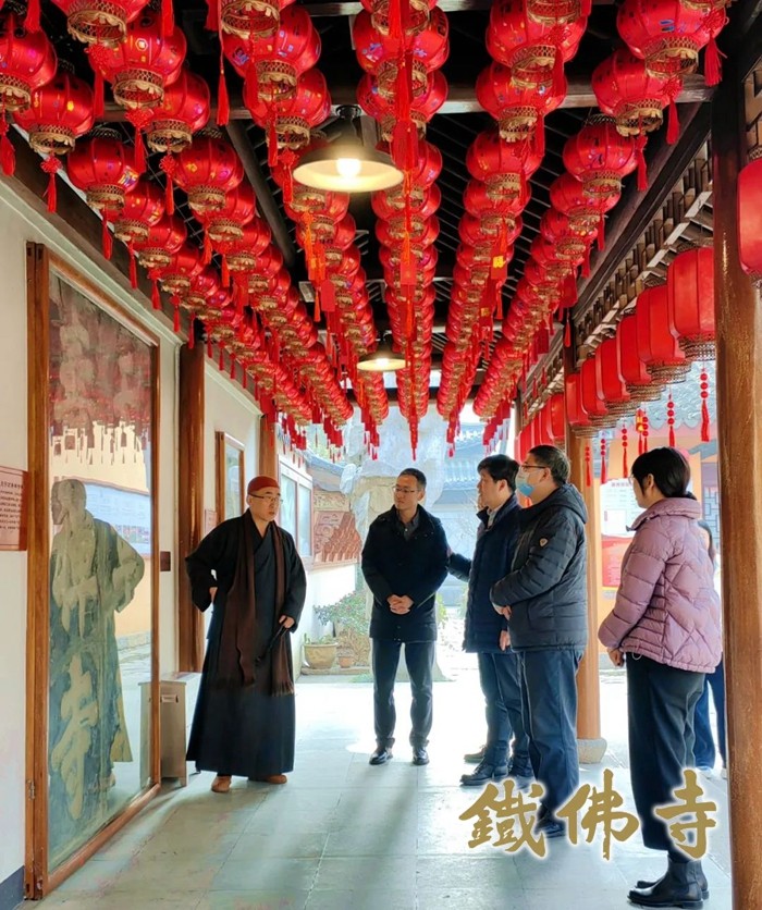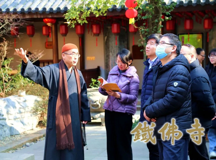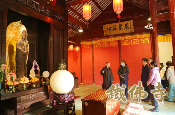 1月9日上午,国家图书馆二级研究员、国家古籍保护中心办公室原主任林世田;国家图书馆副研究馆员、国图创新总经理、国图文保董事长张立朝等一行到铁佛寺调研考察。湖州市佛教协会副会长、湖州市观音文化研究会会长、湖州铁佛寺监院智根法师热情接待了一行。 智根法师不仅向考察组一行简略介绍了湖州的人文历史环境,也详细介绍了铁佛寺的历史渊源和近年来寺院管理建设情况,并逐一介绍了寺藏文物:唐代的陀罗尼经幢、元代赵孟頫的巨字碑、明代的古井、清代胡雪岩捐赠之铜钟和两株网红古红梅。 在观音殿,智根法师特别重点介绍了铁佛寺至尊珍宝——宋铸铁观音。智根法师表示,铁观音是集唐风宋韵之美于一身的经典之作,是宋韵文化的重要代表,开佛教中国化之先河,“铁佛的微笑”向世人示现了佛教的慈悲与美好。就在今年——2024年的农历二月十九,我们即将迎来宋铸铁观音的千年华诞,因此我们也在紧锣密鼓地为系列庆典活动做各种准备。 林世田表示,湖州是一座历史文化悠久、人文底蕴丰厚的城市,人杰地灵,物华天宝。铁佛寺地处湖州市中心寸土寸金,闹中取静,大隐于市,是一座精致典雅、禅意隽永的都市禅林。寺院环境洁净优美,管理规范有序,禅院文化很有特色,于繁华都市之中能够有这么一座宁静质朴的禅院,这是湖州人民的福气。林世田最后说到,铁佛寺虽然精小,但是能够保留并保护好这么多的珍贵文物,实为难得稀有,非常值得学习。 |