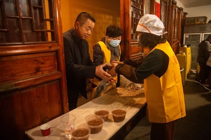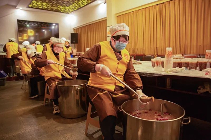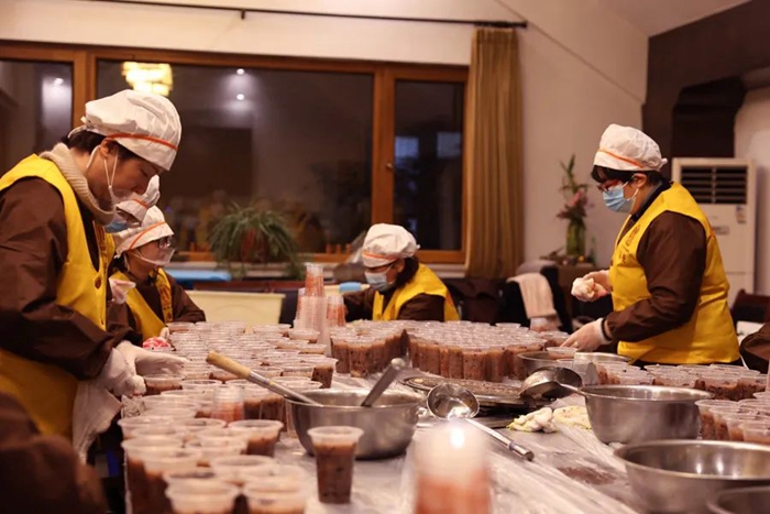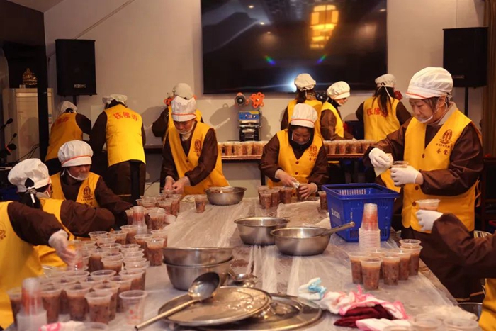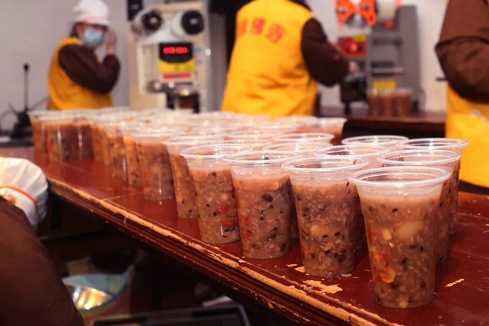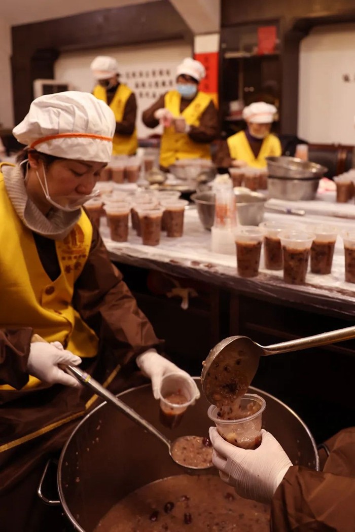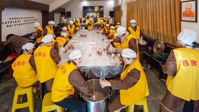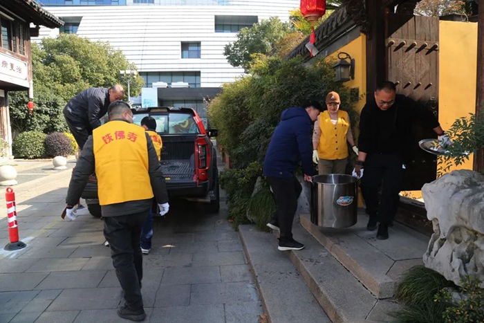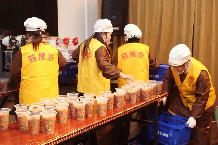 一碗温暖香甜的腊八粥,是湖城人心心念念的味道,是对新年的满满期盼,蕴含着一番美好的祝福。湖州铁佛寺已是第13年在腊八这天举办“香飘湖城·温暖万家”发粥祈福,一碗腊八粥,温暖一座城。寺院用心做好每一碗腊八粥的发心,赢得了许多热心人士和单位机构一起共襄盛举。