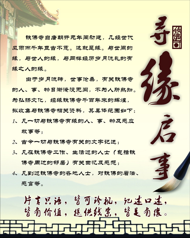 铁佛寺寻缘启事