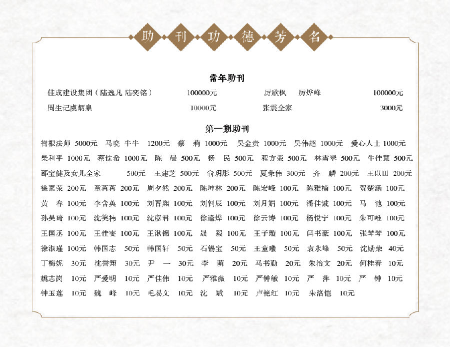 普觉杂志助印捐款(第二期)