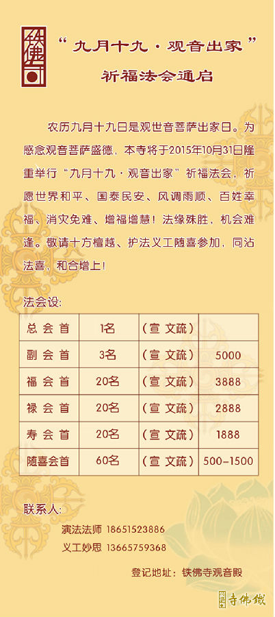 铁佛寺“六月十九·观音成道”祈福法会通启
